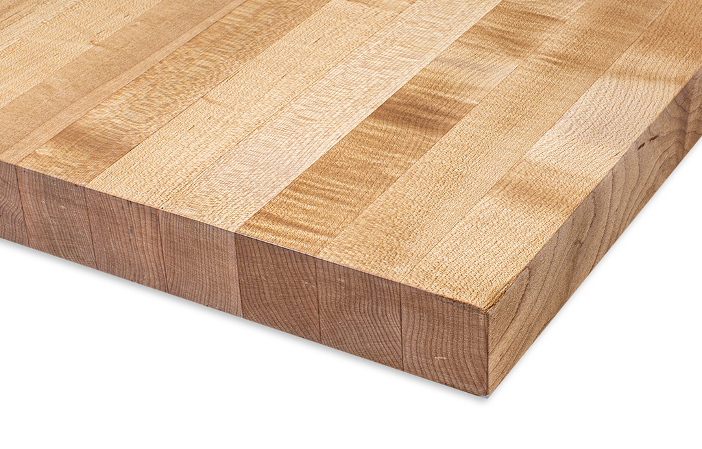 The natural warmth and elegance of hard maple, ranging from creamy white to light golden tones, create a visually pleasing surface perfect for the distinctive look of butcher block countertops. The edge grain construction showcases subtle and tight grain patterns, ensuring an aesthetically pleasing appearance that complements various kitchen styles, from traditional to modern.